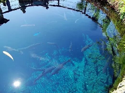 伝言によると、1200年前に忍野八海が存在しました。富士山の雪解け水が、不透水層という地下の溶岩の間でろ過され、湧水となって8か所の泉を形成しました。(お釜池、底抜池、銚子池、濁池、湧池、鏡池、菖蒲池と出口池を含む)平均水温は约13度、水質が清く甘くて、『日本九寨沟』と呼ばれております。’八海’は八つの池という意味で、忍野地区で指定された国家自然風景区で、1985年に“日本名水百選”を入選しました。国家に天然記念物、名水百選、新富嶽百景の一つを指定された。