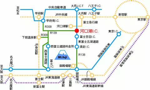 詳しく交通情報:河口湖ICからR189経由、東恋町交差点で右を回って500Mを行って右側にあります。