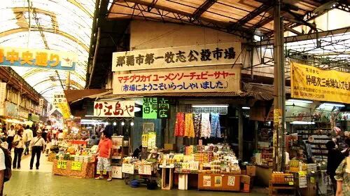 市場の周辺には、食料品以外、惣菜屋や日用品なとさまざまな商店が集まり。天麩羅を食べながら、気になるお土産を探し、ショッピングを楽しみましょう。