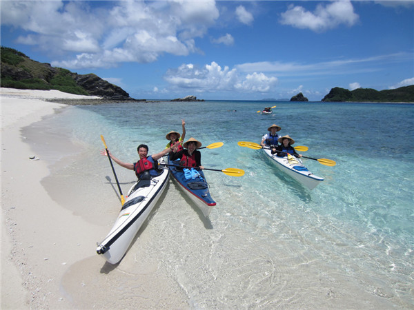 ホエールウォッチングを楽しんだあとは、海へシーカヤックで漕ぎ出しましょう。